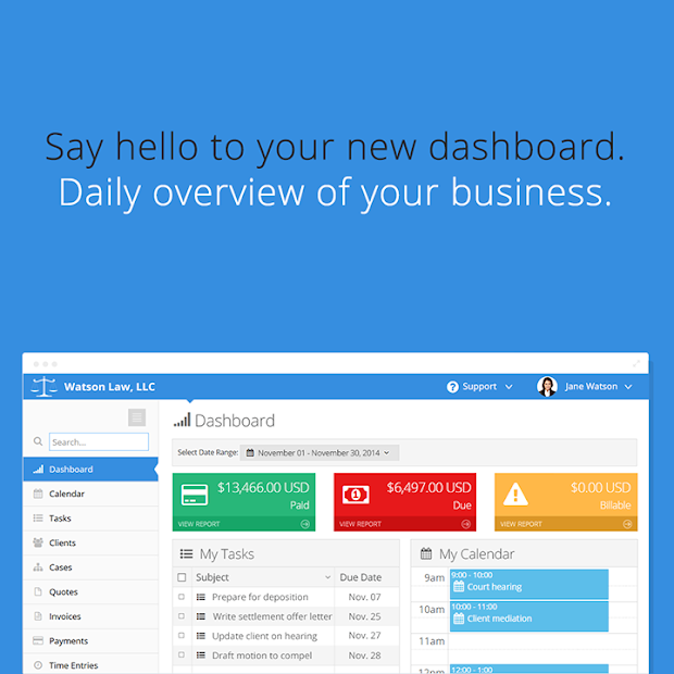 PracticePanther, hukuk uygulama yönetim yazılımı; takip, vaka yönetimi, faturalama, fatura, belge yönetimi, & CRM'yi bir araya getirerek tek çatıda toplar.