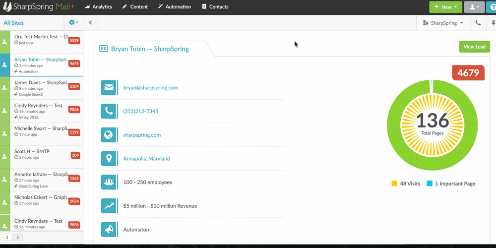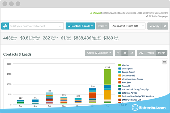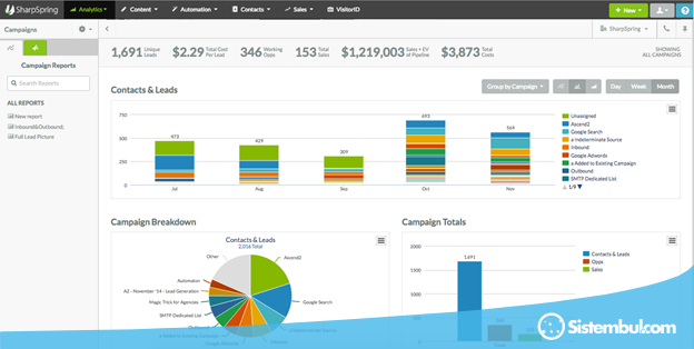 Sharpspring, kendi CRM özelliğine sahip, kullanımı basit, sınırsız kullanıcı ve kişiye olanak sağlayan, CRM çözümleri ihtiyacı duyan şirketlerin ihtiyaçlarına cevap verebilmektedir. Pazarlama kanallarında online ve offline kampanyalarınızın verimliliğini ölçmenize olanak sağlamaktadır.
